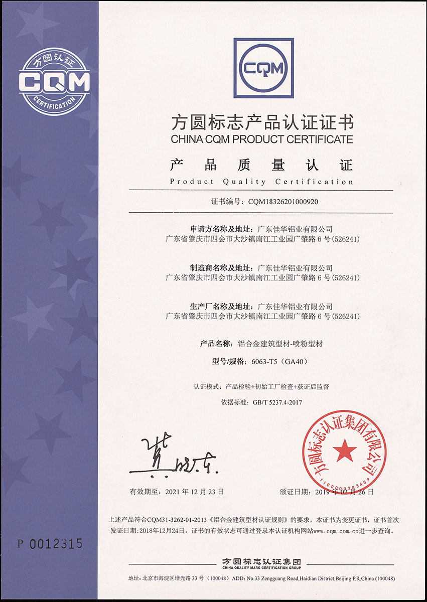 產(chǎn)品質(zhì)量認(rèn)證(噴粉型材)