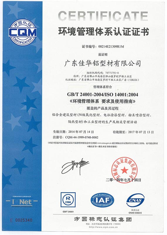 環(huán)境管理體系認(rèn)證證書(shū)