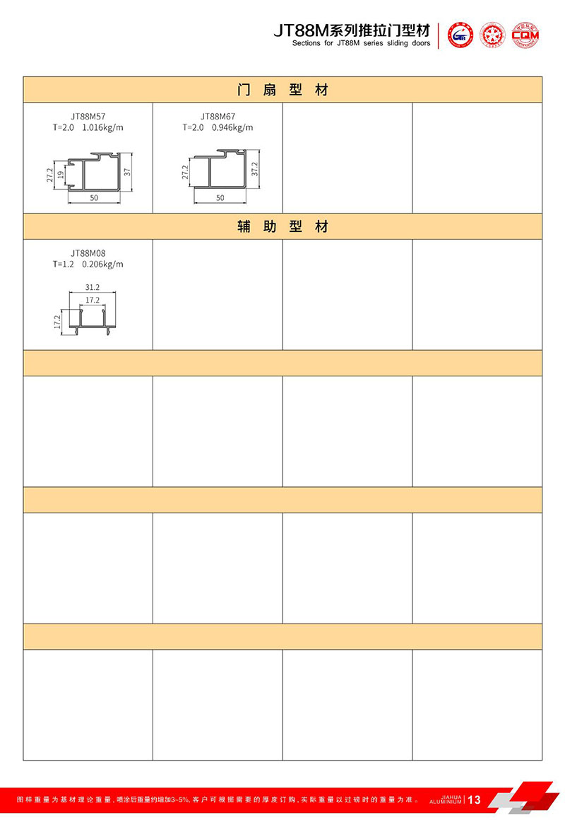 鋁型材規格型號:JT88M