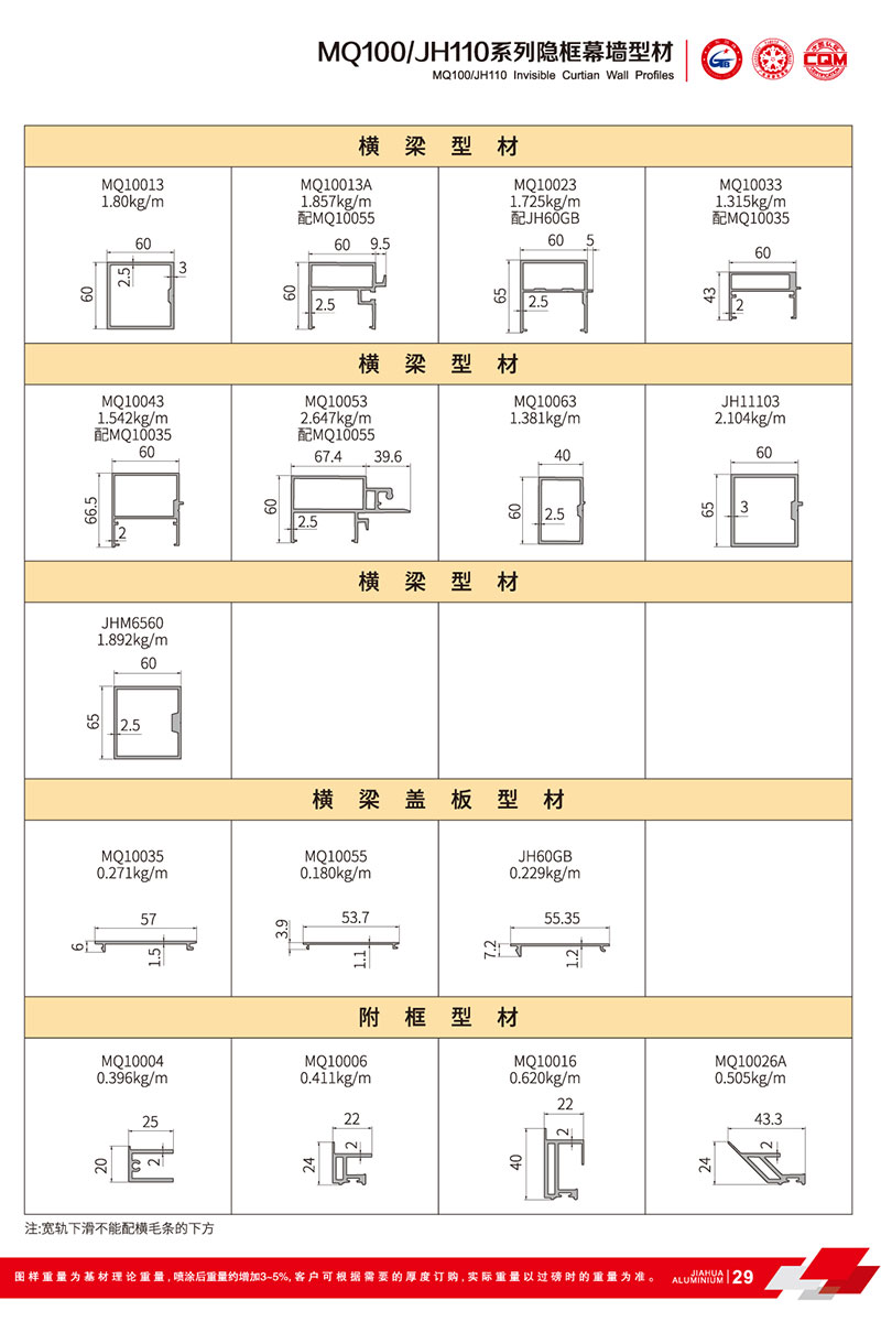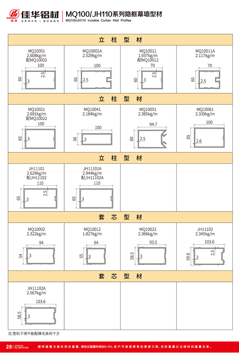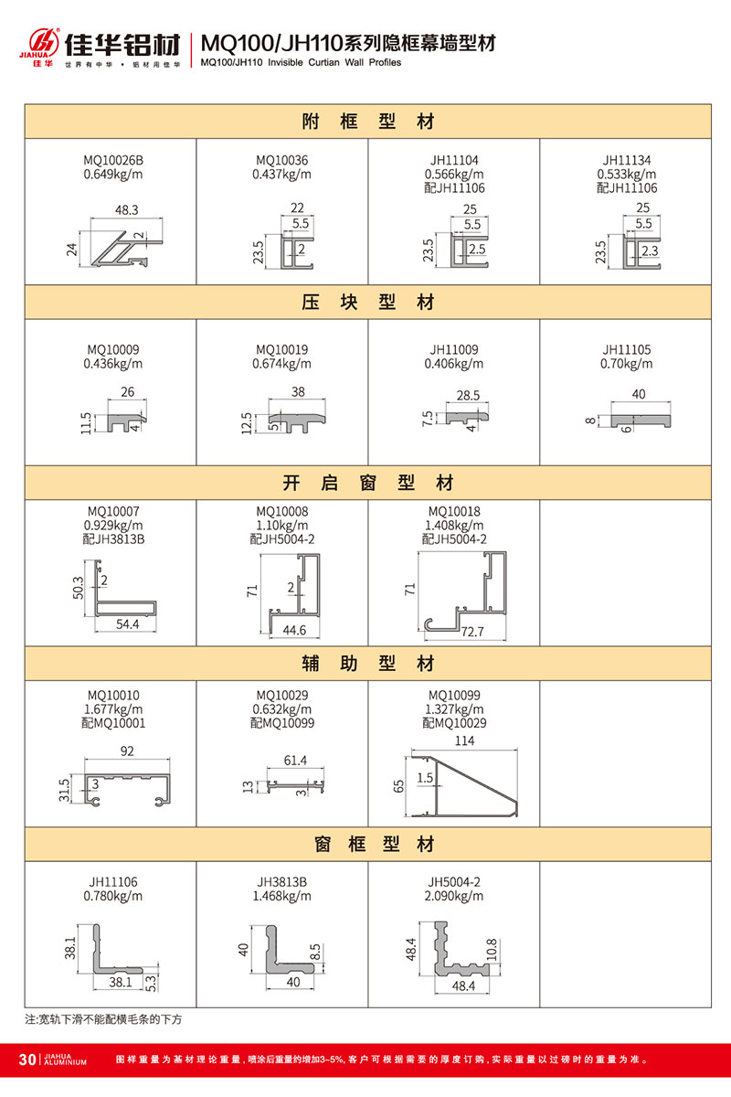鋁型材規格型號:MQ100/JH110 A