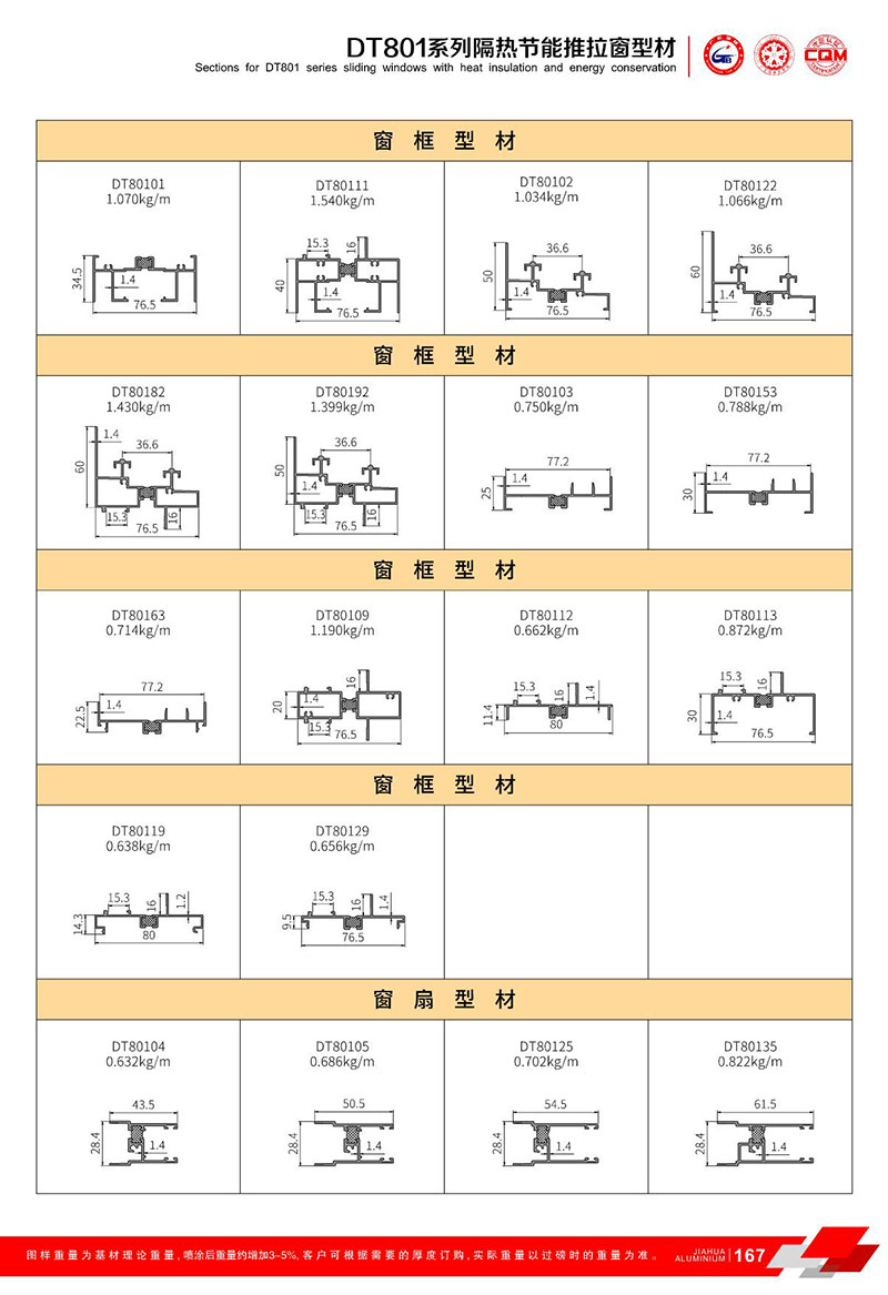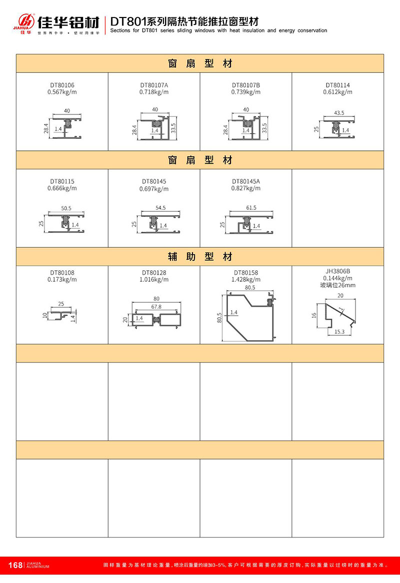 鋁型材規格型號:DT801推拉系列