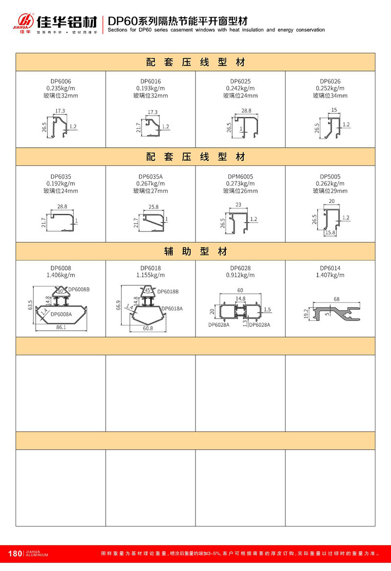 鋁型材規(guī)格型號(hào):DP60平開系列 A