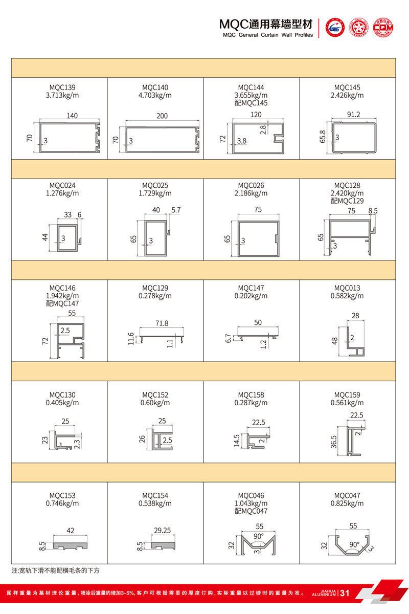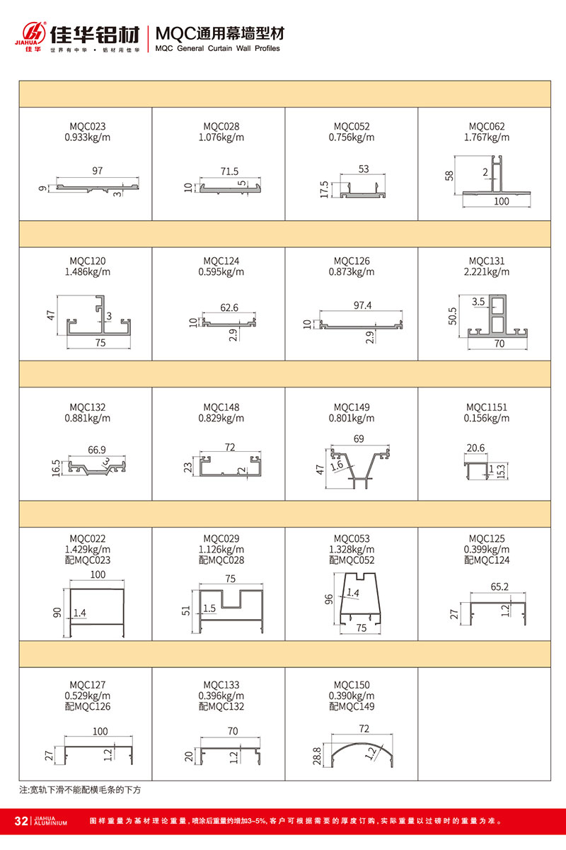 鋁型材規(guī)格型號(hào):MQC通用幕墻型材