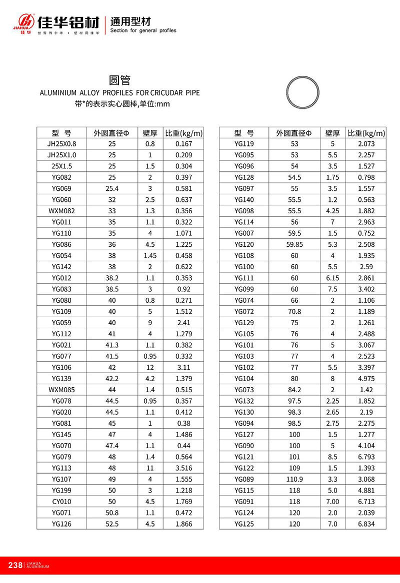 鋁型材規格型號:圓管型材